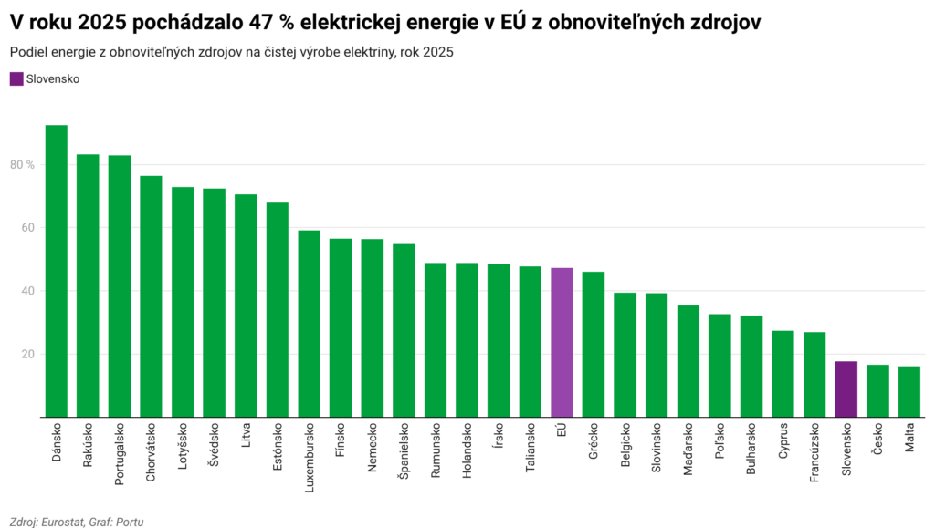 Zelená je cesta. Tlak EÚ na investície do obnoviteľných energií sa ukazuje ako správne rozhodnutie. Členské štáty tým znižujú závislosť na fosílnych palivách, ktoré sa stávajú súčasťou geopolitického boja. V roku 2025 mali obnoviteľné energie na spotrebe elektriny EÚ už polovičný podiel (47,3 %). Vďaka tomu sú ceny elektriny pre európske štáty napriek plynovým šokom výrazne stabilnejšie ako v roku 2022, keď Rusko napadlo Ukrajinu. Pomáhajú tiež snahy EÚ o oddelenie cien elektriny od plynu.